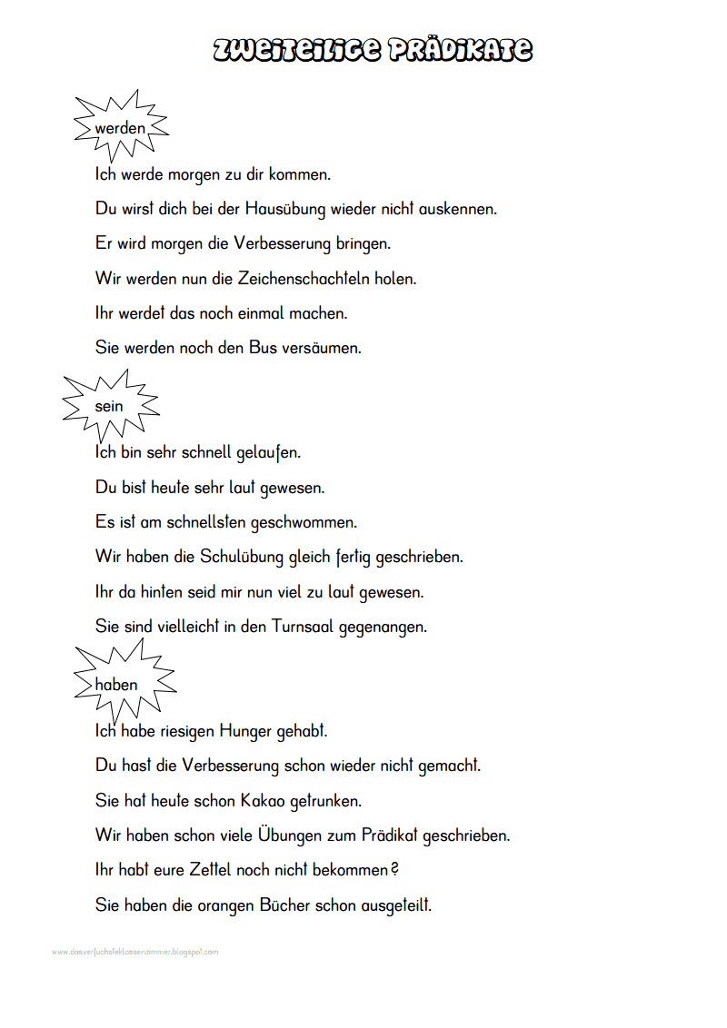 Dem prädikat kommt dabei eine entscheidende bedeutung zu, denn das prädikat bestimmt den aussagegehalt eines satzes. Arbeitsblätter zu allen satzgliedern das prädikat für realschule, gymnasium, grundschule und oberschule. Bevor die kinder das thema … Test prädikate (klasse 4) prädikate im grundschulunterricht.